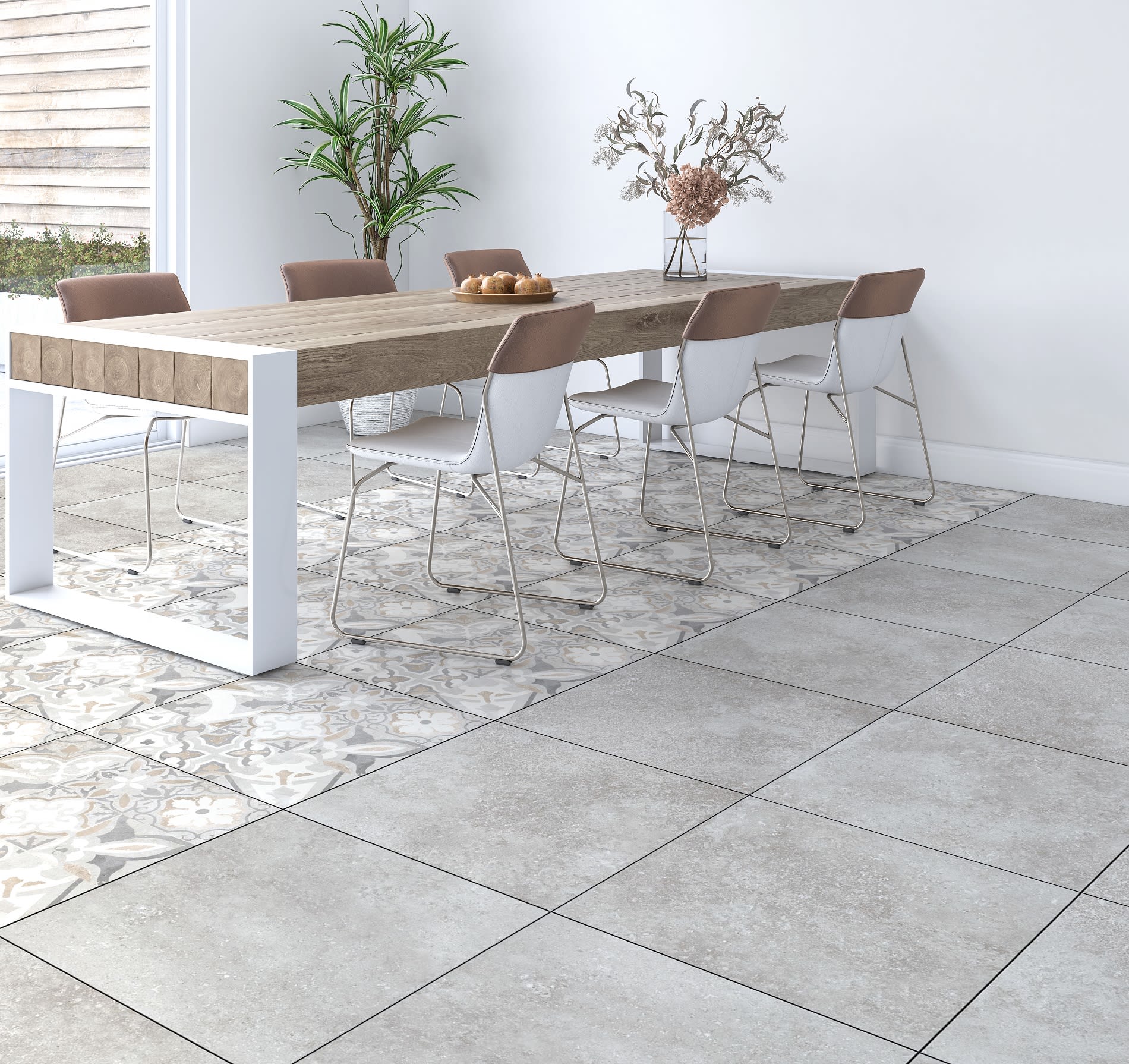 Керамическая плитка — универсальный инструмент для создания выразительного интерьера. Особенно если она имитирует натуральные материалы: камень, бетон, ткань. Благодаря технологии тонкой обрезки и выравнивания швов, покрытия создают цельное полотно, которое выглядит современно и минималистично.